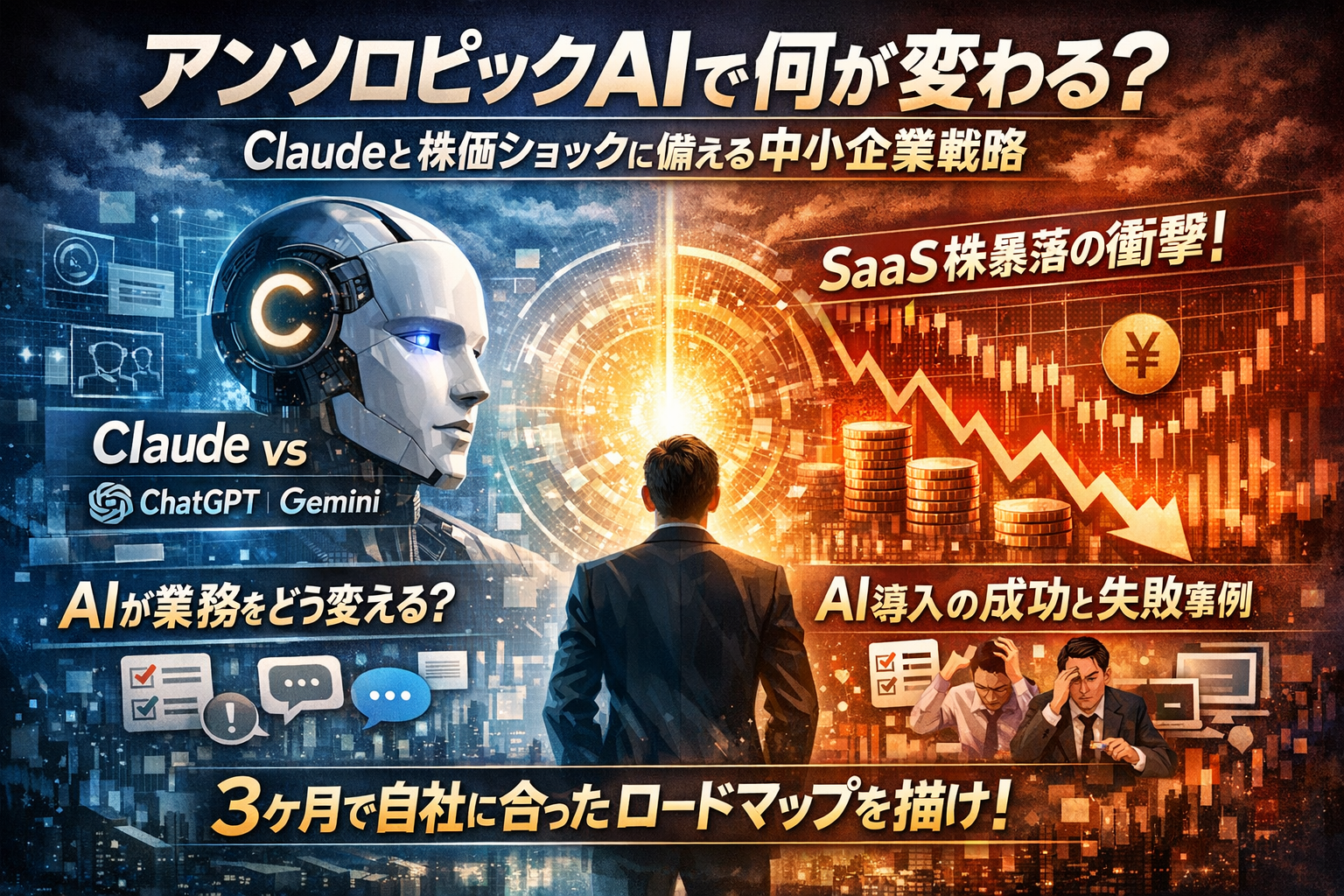 あなたの会社の業務フローと投資判断は、すでにアンソロピックaiの影響を受けています。それでも「アンソロピックとはどんな会社か」「ClaudeはChatGPTやGeminiと何が違うのか」をニュースと株価チャートだけで判断しているなら、見えない損失が積み上がり続けます。世の解説が強調するのは、アンソロピックショックによるSaaS銘柄の急落やAnthropicへの巨額出資、Claudeの高性能モデルや無料プランといった表面的な情報です。しかし、中小企業にとって本当に重要なのは、アンソロピックaiエージェントやaiツールを既存SaaSとどう組み合わせるか、どこまでClaudeに任せてどこを人が担保するか、その線引きです。この記事では、アンソロピックai憲法の設計思想から、Claude Opus/Sonnet/Haikuの使い分け、株価ショックの裏で実際に起きている業務置き換えの範囲、さらに「無料版Claude全社展開」や「SaaS全解約」といった典型的な失敗パターンまで、すべてを中小企業の現場目線で一本につなぎます。読み終える頃には、3ヶ月で自社に合ったアンソロピックai導入ロードマップを引ける状態になり、「様子見」で時間と資産を削る状態から抜け出せます。