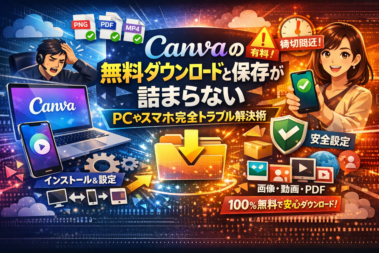 本記事では、Canvaをブラウザ完結で使うべきケースとデスクトップアプリを入れるべきケース、パソコンとスマホ間での安全な行き来、画像やPDFやMP4を無料のまま安定してダウンロードする設定、さらにプロが静かにやっている「落ちないデザインの組み方」まで具体的に整理します。ここで整理された順番どおりに進めれば、「Canva パソコン ダウンロード」「Canva スマホ 使い方」を何度も検索し直す時間そのものが不要になります。この記事を読まずに運用を始めること自体が、トラブルと有料化リスクを自分から招き入れる行為だと考えてください。