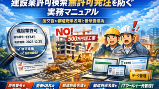建設業許可検索を「国土交通省の建設業者等企業情報検索システムで会社名を入れて、許可番号が出れば安心」と扱っている限り、無許可発注や業種違い発注のリスクはほとんど減りません。実際の現場では、建設業許可番号だけをExcelに控え、有効期限や許可...