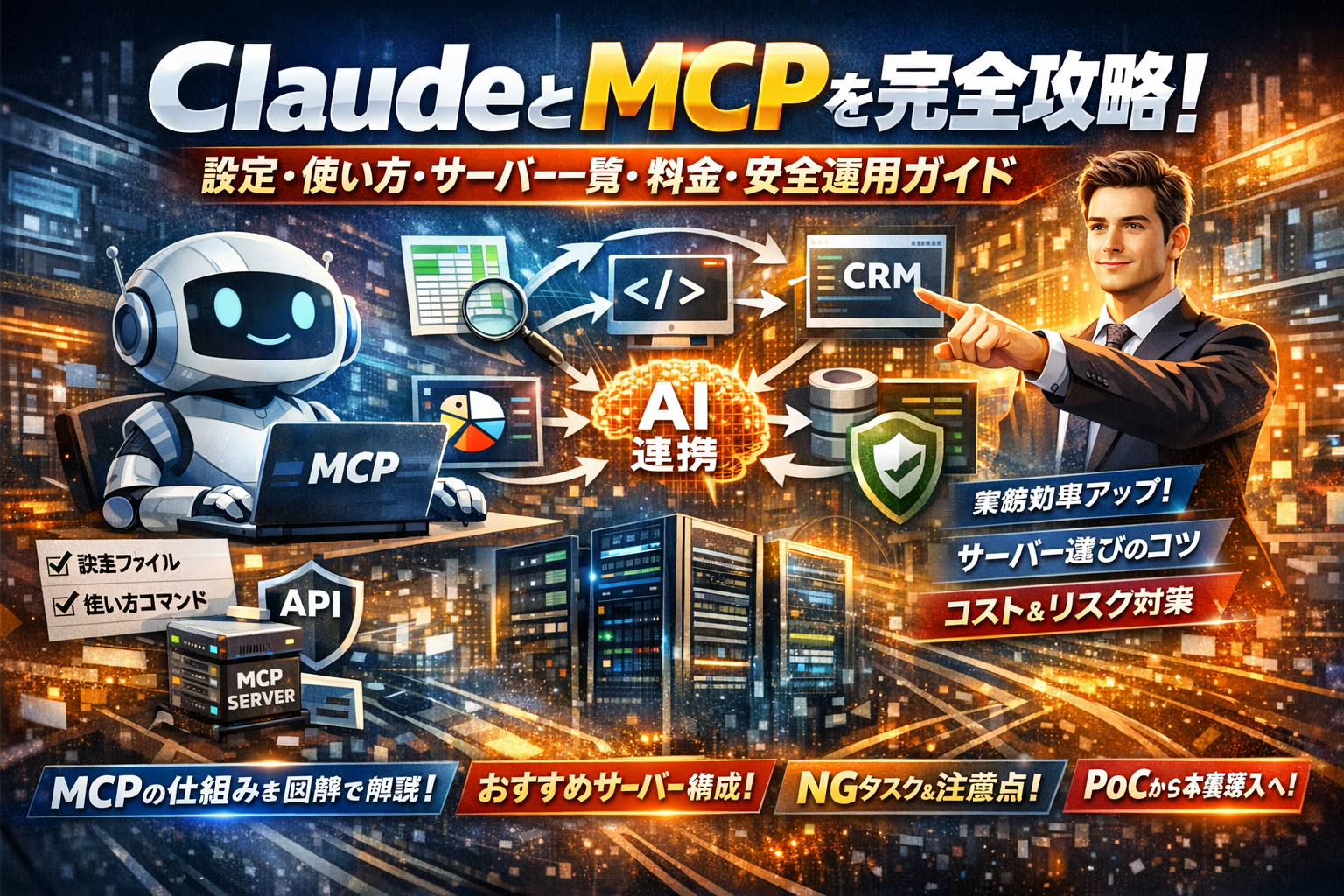 Claude MCPを「なんとなく便利そうな新機能」のまま放置していると、AIをただの高性能チャットに閉じ込めたまま、検索やスプレッドシート、社内ツール連携による生産性向上の余地を丸ごと捨てることになります。公式ドキュメントや技術記事で語られているのは、MCP(Model Context Protocol)の仕組みやClaude Desktop・Claude Codeでの設定方法、MCPサーバー一覧や料金・セキュリティの注意点までが中心です。本記事はそれらを前提に、「中小企業の現場で、どこまでAIに触らせるか」を具体的な線引きまで落とし込むことをゴールにしています。Claude MCPとは何かを整理し、Claude mcp addやremove、設定ファイル(json)の扱い方、Windows特有のエラーのつぶし方、用途別のおすすめMCPサーバー構成と「最初は避けるべき」サーバーを明示します。さらに、Claude MCPの料金やAPI・外部サービスの課金が跳ねない設計、誤送信や権限ミスの実例、PoCから本番展開までのロードマップまで一気に解説します。Claude MCP 設定・使い方・サーバー一覧・料金・安全運用を一度で整理したい方にとって、この記事を読まずに社内導入を判断するのはリスクが高すぎます。