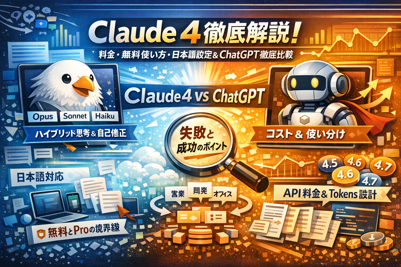 多くの解説が性能やトークン上限、料金表、API仕様の紹介で終わるのに対し、本記事はClaude 4のハイブリッド思考モードとSelf correction(自己修正プロセス)を、実務でどう設計すると成果とリスクが変わるかに踏み込みます。OpusとSonnetとHaikuのモデル選択、Claude 4.5/4.6系の位置づけ、無料とClaude ProやAPIのコスト境界、日本語ブラウザやアプリで「日本語にならない」ときの対処まで、DX兼務の担当者が迷うポイントを一気に整理します。