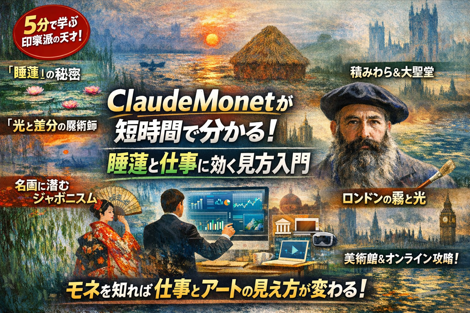ClaudeMonetが短時間で分かる!睡蓮と仕事に効く見方入門