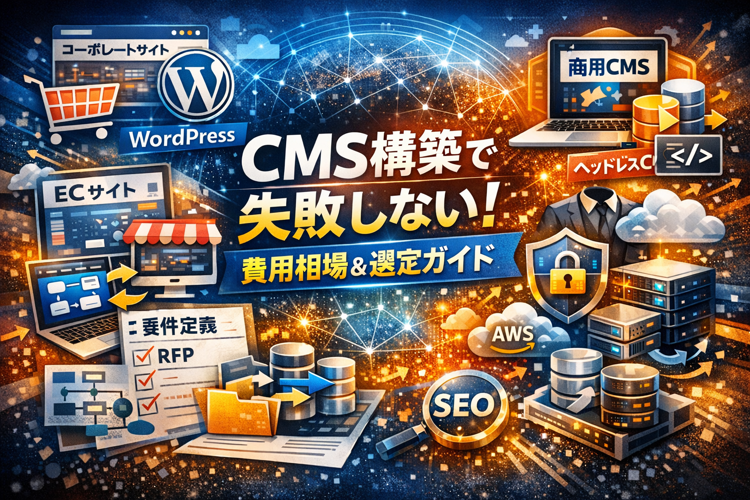 本記事では、cms構築とは何かを現場の実態から整理し、コーポレートサイト、ECサイト、会員サイト、ポータルサイトなど用途別に、WordPressや商用CMS、ヘッドレスCMS、独自開発のどれが合理的かを「失敗しない条件」から切り分けます。そのうえで、cms構築の手順を手戻りが起きやすい順に分解し、費用相場と見積書の増額ポイント、AWSなどのサーバ構成、セキュリティとバックアップ、イントラや独立行政法人でありがちなトラブルまで、実務ロジックだけで解説します。この記事を読み進めれば、cms構築会社や開発会社に相談する前に、自社の運用体制とRFP下書きまで固められ、「WordPressで本当に良いか」「今の独自CMSからどう移行するか」に迷わない判断軸が手に入ります。