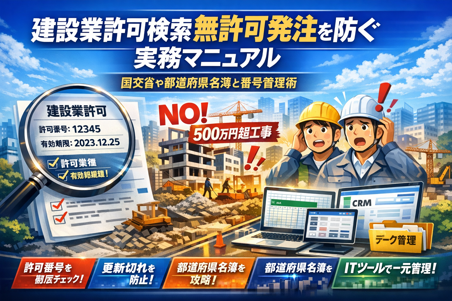 「許可番号があるから大丈夫」そう思って発注した工事が、後から無許可扱いだった――現場では珍しくない話です。検索サイトを開けた時点で半分ゴールに見えますが、実はスタート地点に立っただけです。ここでは、総務・工事事務・現場監督の方が、明日から発注リスクを下げられる視点に絞って整理します。