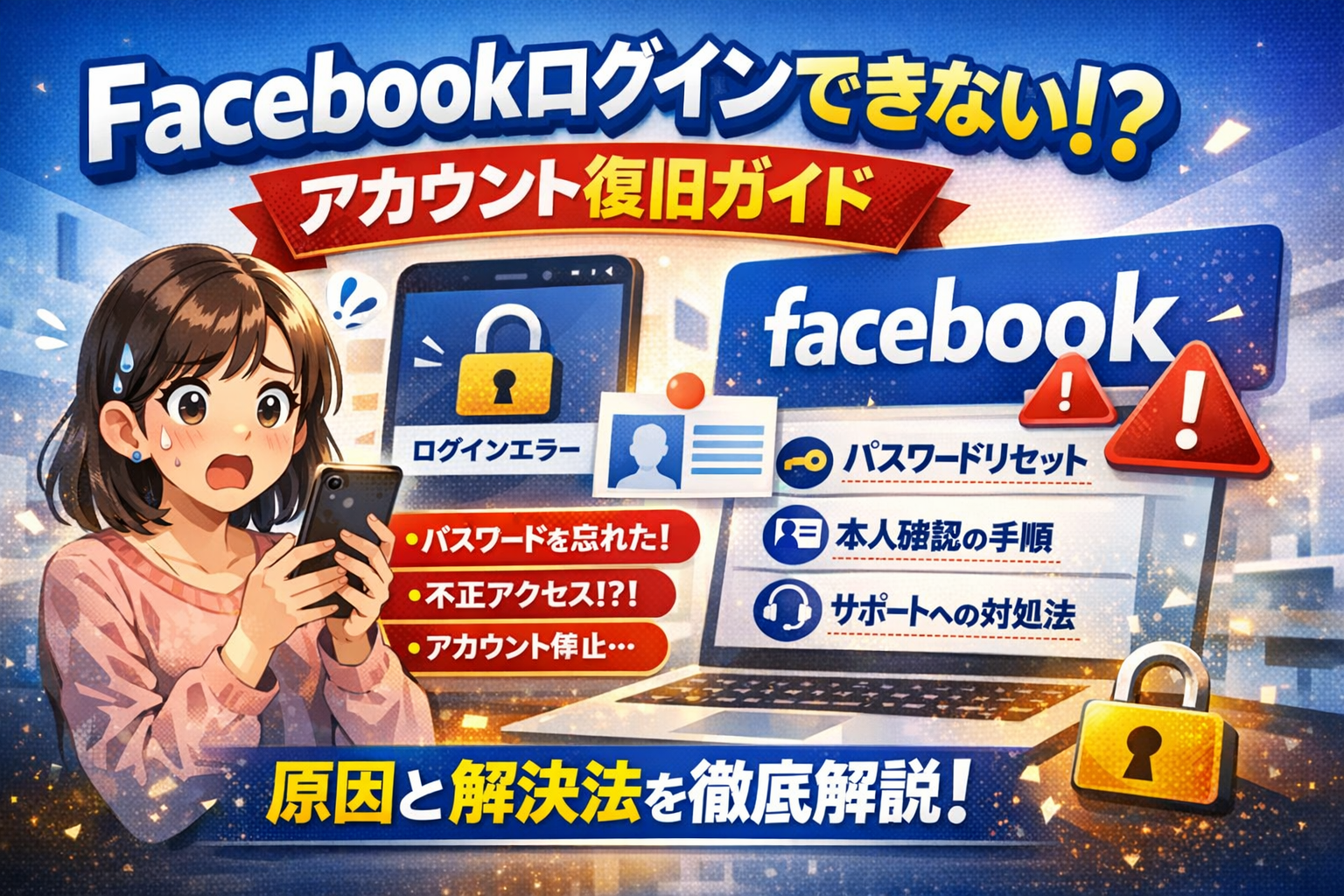 「リセットコードが届かない」「本人確認書類の提出で止まっている」「スマホアプリだけログインエラーが出る」「公式のFacebookヘルプセンターを見ても状況が変わらない」といった状態から、どこまで復旧できるかを、実務で使うトラブルシュートの順番に落とし込みました。