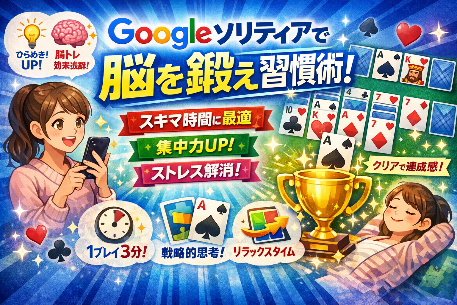 読み終える頃には、次に検索窓へ「google ソリティア」と打ち込む前に、必ず一瞬立ち止まれるようになります。しかも、ソリティアで鍛えた先読み思考やリスク管理を、仕事のタスク設計や勉強計画に転用する具体的な方法まで手に入ります。ゲームを封印するのではなく、「出口を決めてから入る」習慣に変えることで、今日から失われる時間を即座に止血できます。
