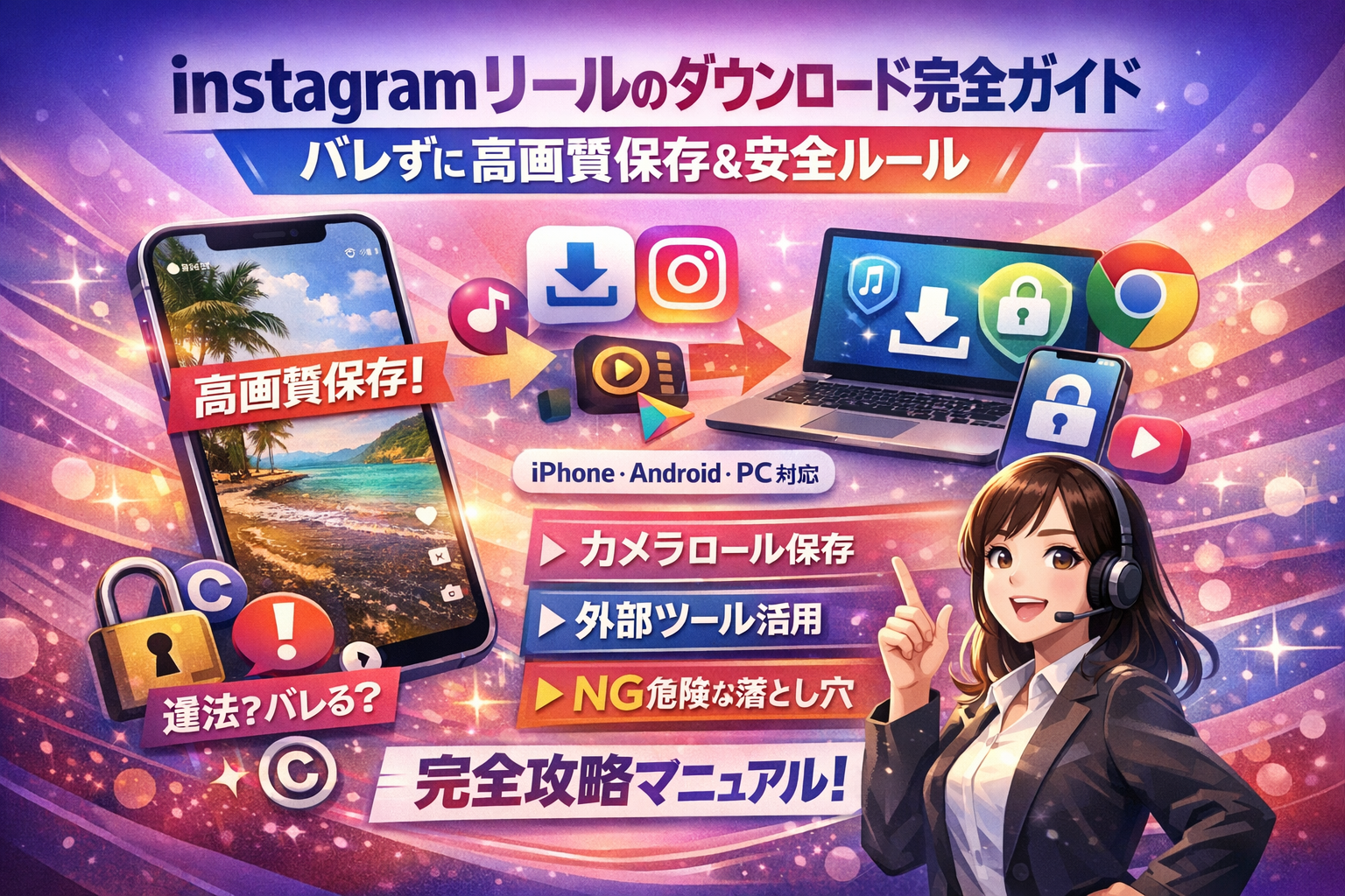 「とりあえずこのinstagramリールをダウンロードしたいだけなのに」そう思って検索しても、アプリの宣伝と断片的な手順ばかりで、肝心のことが抜け落ちていないでしょうか。自分のリールをカメラロールに保存したいのか、他人のリール動画や音源を高画質で残したいのか、iPhoneかAndroidかPCかで、最短ルートもリスクもまったく変わります。さらに「インスタのリール保存はバレるのか」「instagramで動画をダウンロードするのは違法なのか」「リールダウンローダーやChrome拡張機能は安全なのか」といった不安を抱えたまま、なんとなくアプリを入れているなら、それ自体が目に見えない損失です。この記事では、instagramリールのダウンロード方法を端末別・目的別に整理しつつ、バレるかどうか、どこまで許されるか、どのツールを選ぶと危険なのかまで一気通貫で解き明かします。SNS担当者や副業クリエイター向けに、社内共有やバックアップを含めた「安全な保存ルール」も具体的に示します。今のやり方を続けるか、このガイドで一度設計し直すかで、これからのトラブルの量がはっきり変わります。読み進めながら、あなたにとって最適な章へすぐ飛べる構成にしてあります。