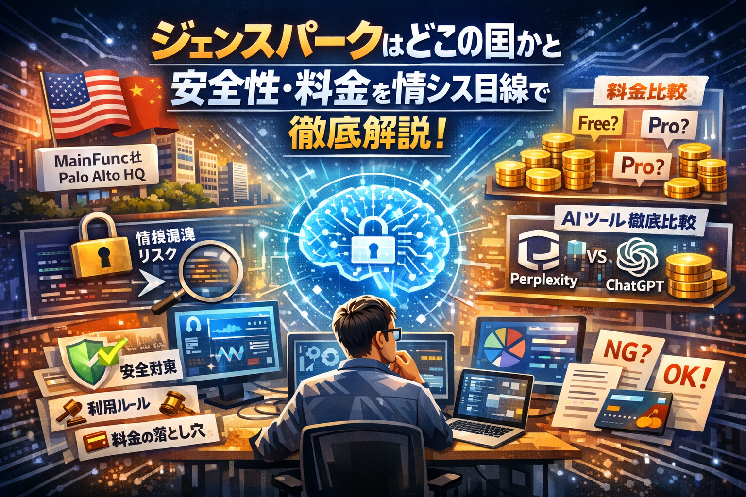 「ジェンスパークどこの国?」と検索して、結局ブラウザを閉じていないでしょうか。Gensparkはアメリカ・カリフォルニア州パロアルト本社のMainFunc社が提供するAI検索エンジンで、創業者は中国出身ですが、会社としては米国企業です。この事実だけをなぞって安心・不安を判断してしまうと、肝心の安全性・情報漏洩リスク・料金の落とし穴を見落とします。