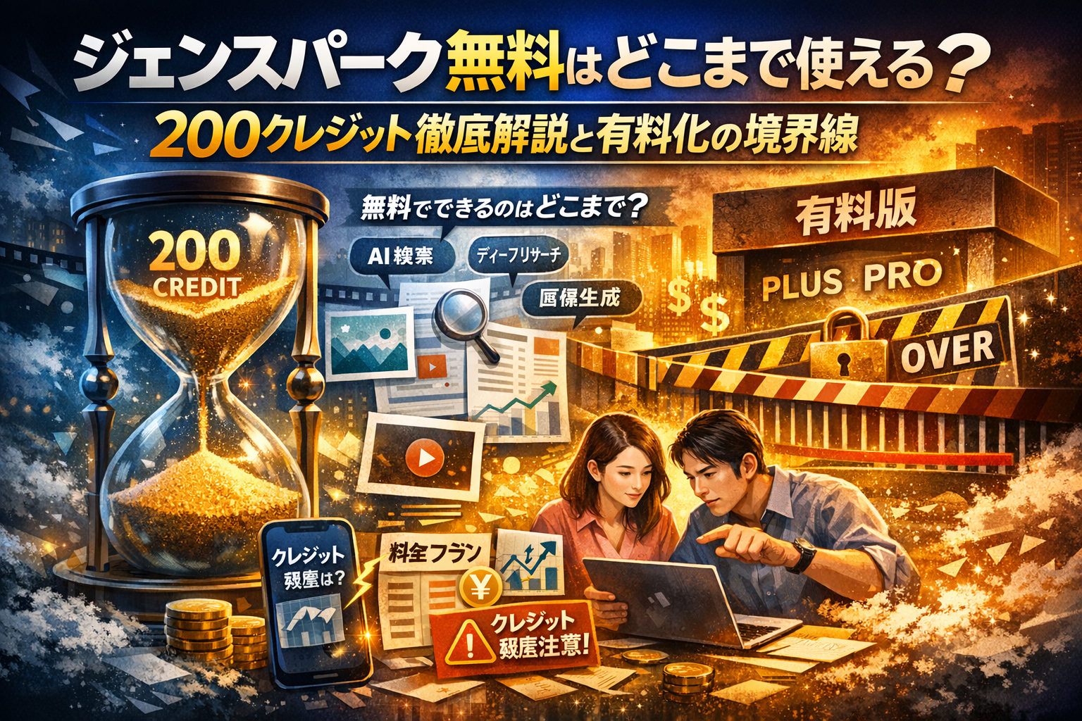 ジェンスパークを「とりあえず無料で触っている」状態のままだと、200クレジットの実力も、どこからが有料版の出番かも分からないまま、仕事時間とお金をじわじわ失っています。無料クレジットは1日200という数字だけ見ても意味がなく、AI検索を何回、ディープリサーチを何本、画像や動画をどれくらい回せるかという具体的な作業量に置き換えて初めて判断できます。しかも、無料版とGenspark PlusやProではクレジット単価も機能も違うため、「とにかく有料にすれば安心」という決め方も危険です。