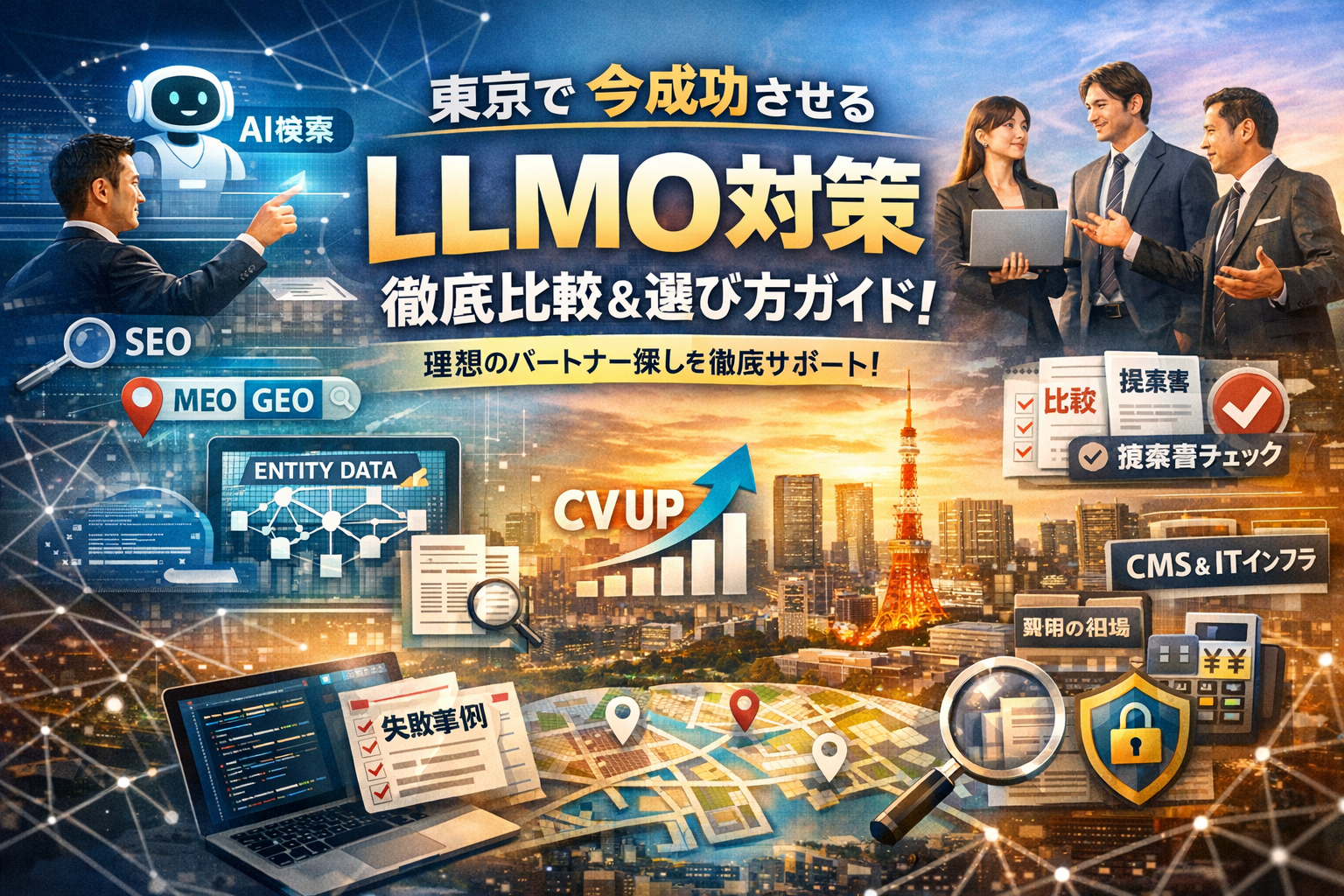 ここ数年、東京都内の企業を支援していて強く感じているのは「検索では見つかるのに、AIにはまったく採用されない会社」がはっきり増えていることです。新宿や渋谷の案件でも、SEOとMEOには投資しているのに、AIモードの回答を追っていくと、競合ばかりが引用されているケースを何度も見てきました。原因をたどると、サイト構造やエンティティ設計以前に、CMSの仕様や権限設計、PCやスマホの運用ルール、回線トラブルがボトルネックになっていることが多くあります。実際、私自身も検証中にログイン不可や権限エラーでschemaの追加が止まり、その間に検索結果が一気に入れ替わった経験があります。現在継続支援している四十三社でも、AIツール導入だけ先行し、ガイドライン不在のままコンテンツを量産してブランドやセキュリティにヒヤリとした場面が少なくありません。単に「強そうなLLMO対策会社を選ぶ」だけでは、こうした現場の詰まりは解消しません。この記事では、東京という競争エリアで実際に起きている課題と、会社選びのどこを見れば自社のIT環境やリテラシーにきちんとフィットするかを整理しました。自分と同じようにITが得意ではない担当者でも、AI検索時代に取り残されない判断軸を持てるようにしたい、というのがこの記事を書いた一番の理由です。