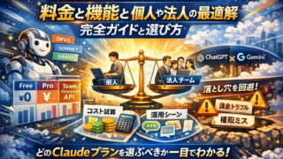 Claudeプランを調べても、FreeかProかMaxか、TeamやEnterprise、APIまで含めた全体像と実務での使い分けが一枚で理解できる情報はほとんどありません。料金表やプラン一覧、ざっくりしたプラン比較だけでは、社内のFree...