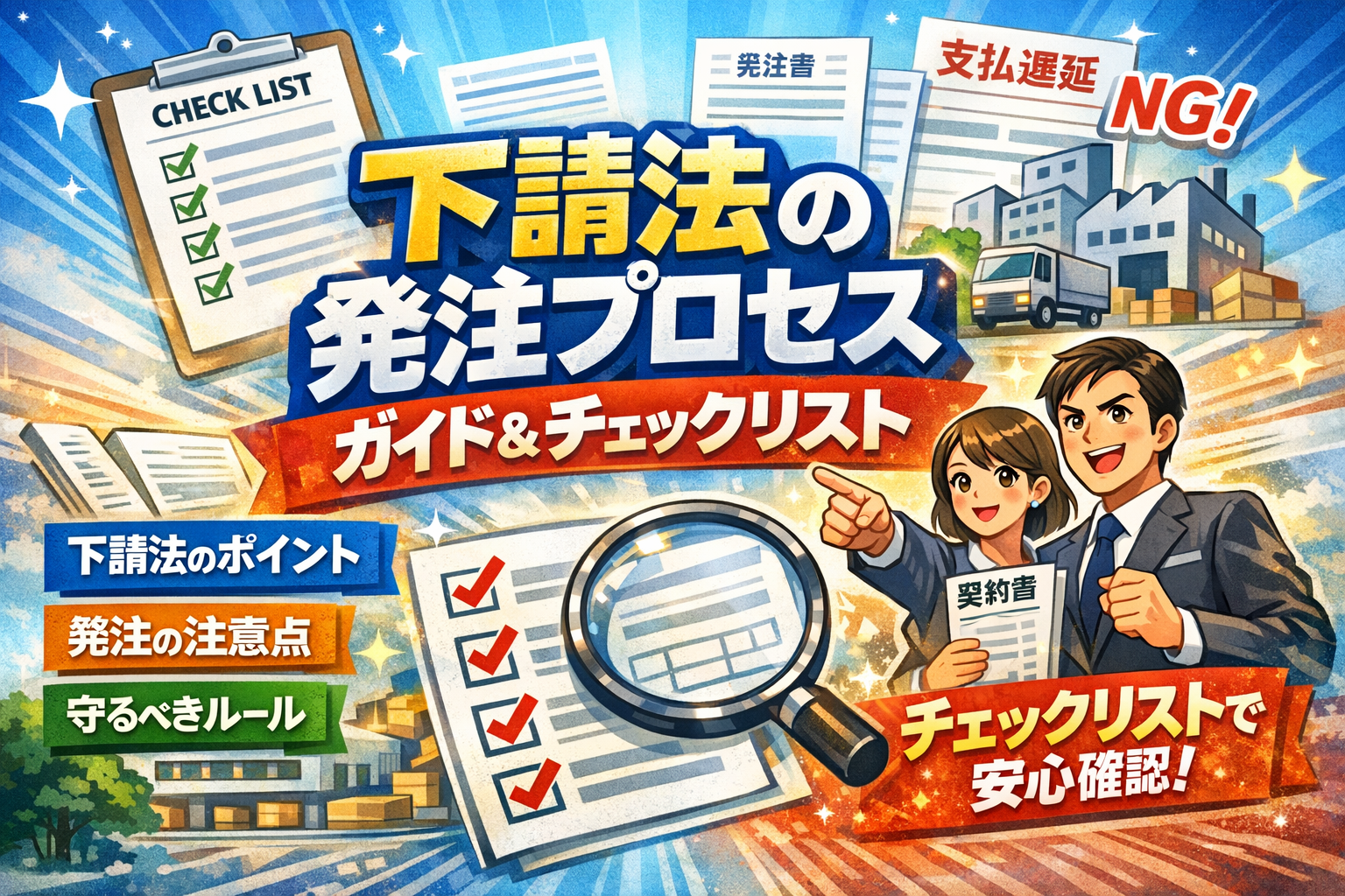 下請法のポイントは、専門用語より日々の“ひとこと”と1枚の書面を変えられるかどうか。明日の発注から変えるつもりで、まずは自社のフォーマットを開いてみてください。