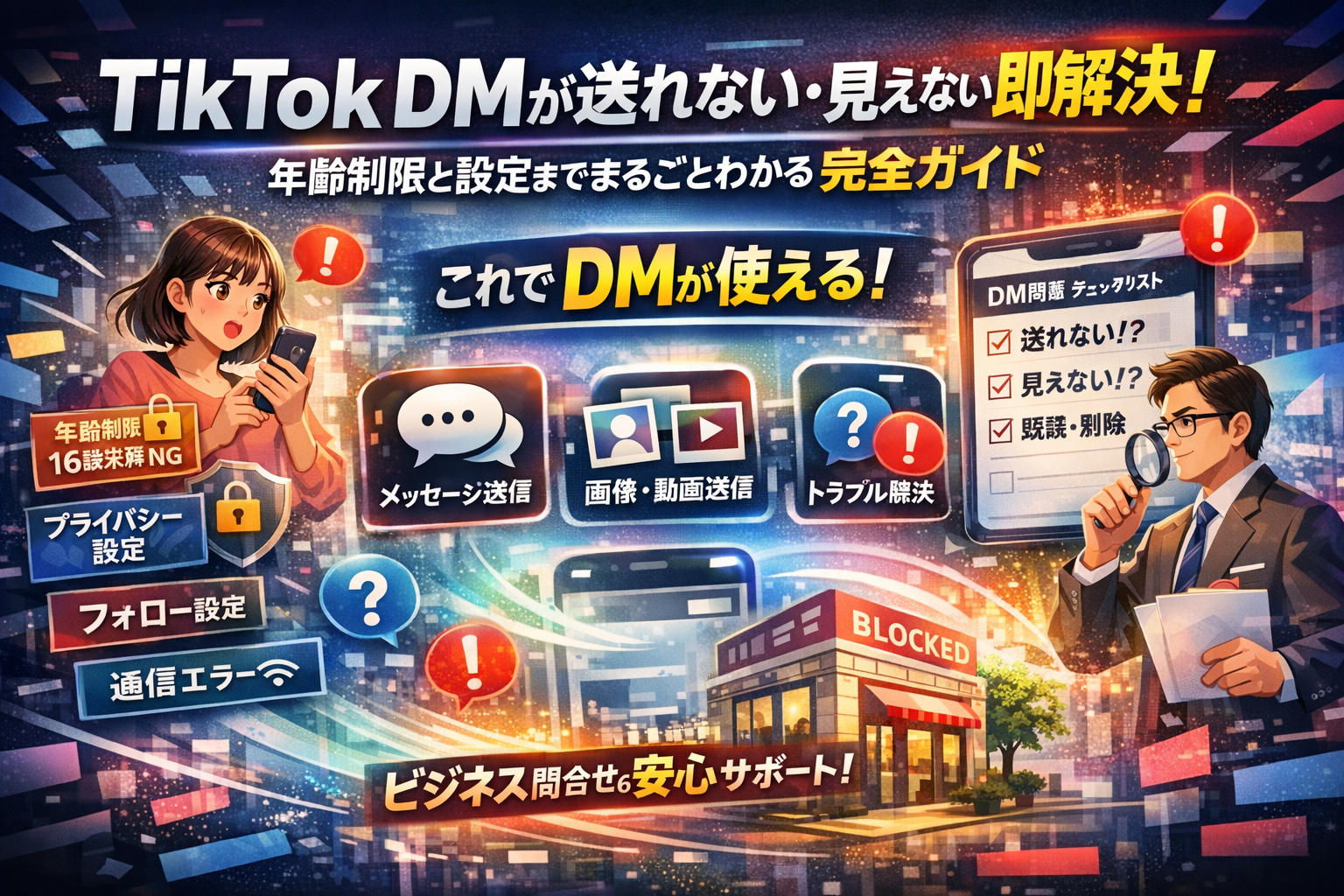 中小企業の支援をしていると、ここ数年でTikTokを「問い合わせ窓口」として使い始める企業やクリエイターが一気に増えました。ところが現場で話を聞くと、DMが届いていないのに気づかず放置していたり、年齢制限やプライバシー設定、フォロー関係、通信状態が絡み合って「送れない理由」が誰にも説明できないまま、担当者だけが責められているケースが目立ちます。