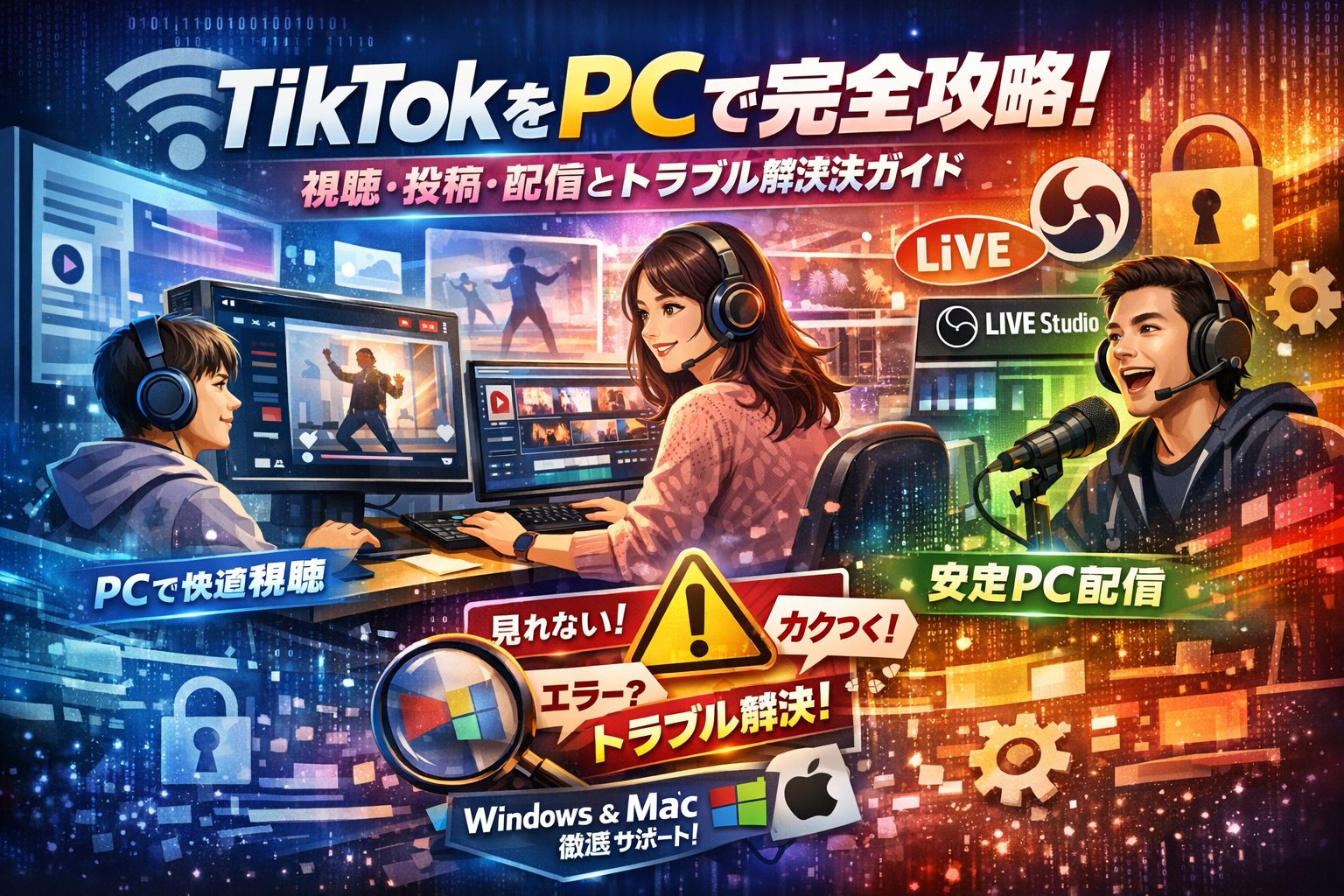 本ガイドでは、TikTokをPCで見る・投稿する・配信する・分析するまでを一つの流れで整理し、ウェブ版とアプリ版、LIVE StudioとOBSのどれを選ぶべきかを用途別に切り分けます。そのうえで、PC環境や通信回線、セキュリティソフトが原因になる「カクつき」「強制ログアウト」「PC配信できない」をITインフラの視点から分解し、企業アカウント運用で起こりがちなアカウント共有事故や情報開示・著作権リスクまで、実務で使える形に落とし込みます。ここで全体像とトラブル潰しの手順を押さえておくかどうかが、これからのTikTok運用の手触りを大きく分けます。