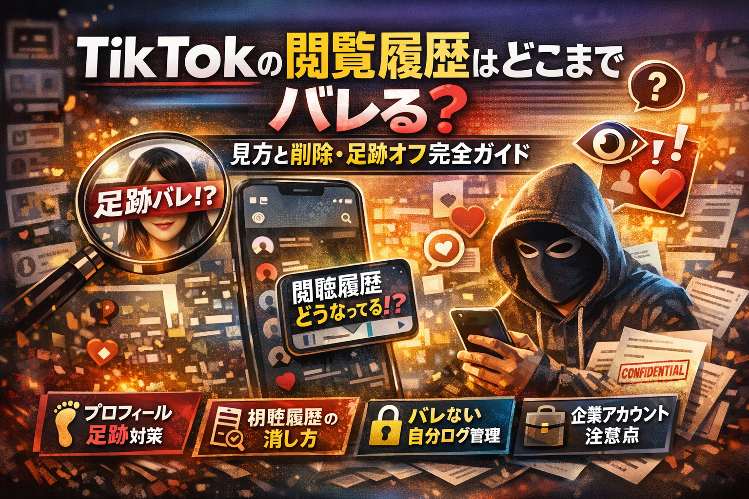 TikTokは視聴履歴、検索履歴、プロフィール閲覧履歴が別々の考え方で動いており、端末共有や担当者交代が絡むと途端に複雑になります。この記事では、利用者が「何をすれば相手に見え、どこから先は自分だけの記録なのか」を、日常利用と企業運用の両方を想定して判断できるようにすることを目的としています。プライベートでも仕事でも、余計な気まずさやコンプラリスクを避けつつ、安心してTikTokを使ってほしいという思いから執筆しました。