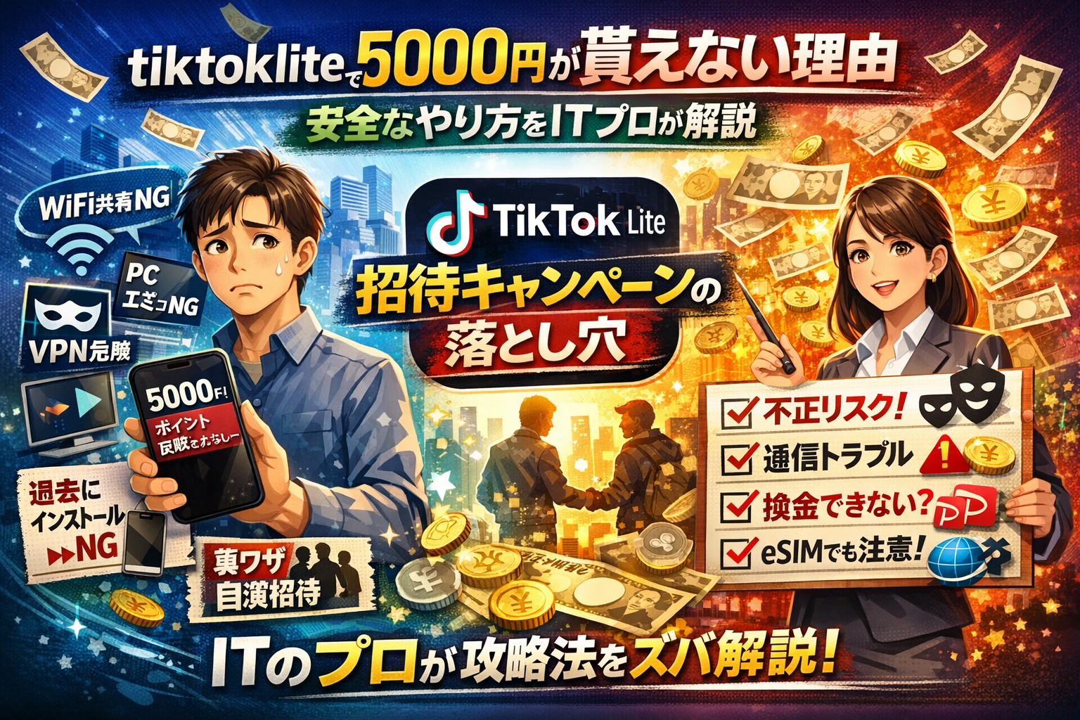 この記事を読み終える頃には、tiktok lite 5000円キャンペーンでどこまでが安全なやり方で、どこからが招待自演や無限招待としてリスクが跳ね上がるラインなのか、自分のスマホや会社端末、家族のWiFi環境まで含めて判断できる状態になっているはずです。
