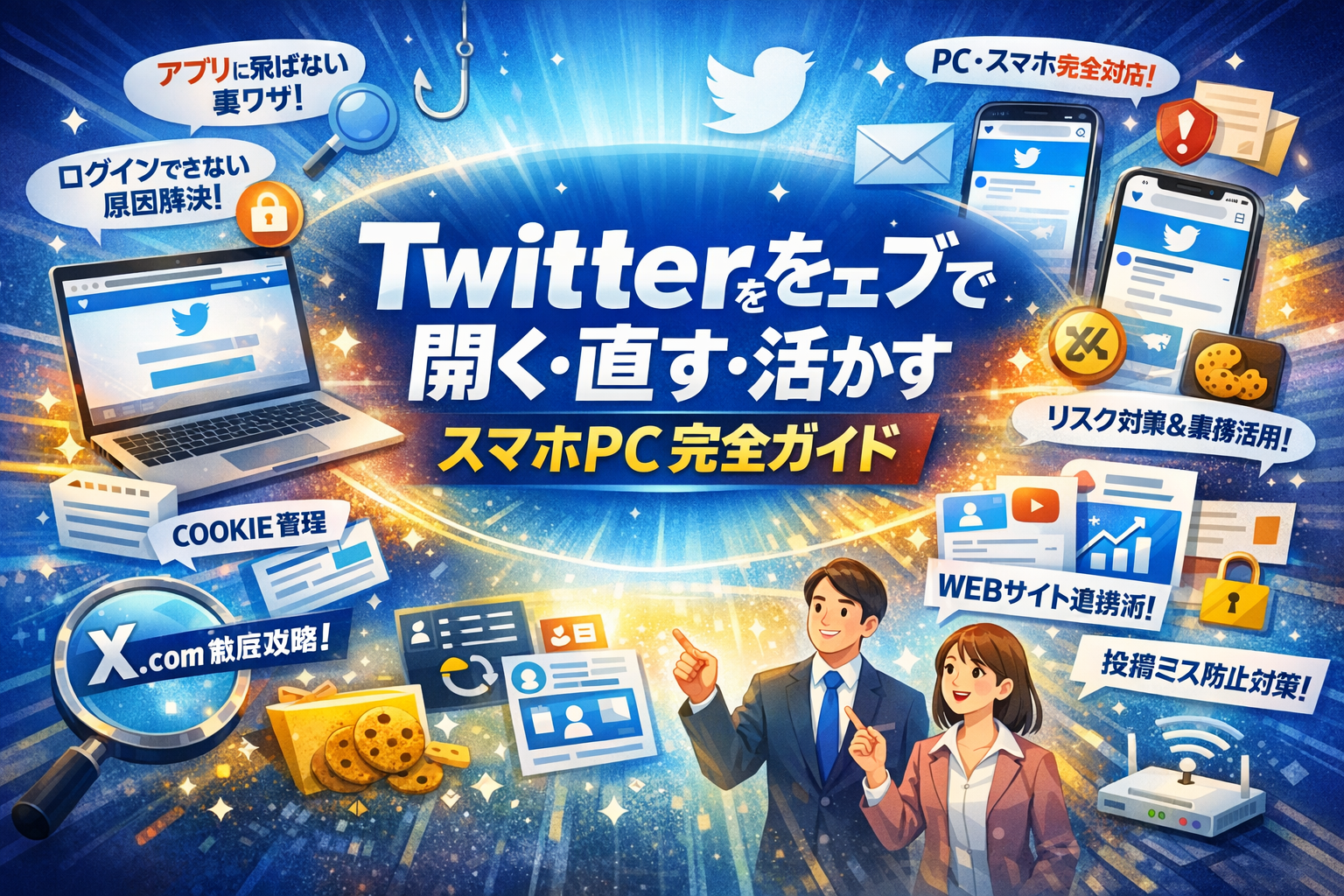 本記事では、PCとスマホそれぞれでのTwitterブラウザ版の正しい入口とブックマーク、iPhoneのSafariやAndroidのChromeでアプリに飛ばされない開き方、Xブラウザ版ログインエラーの3分診断、Cookieや拡張機能、社内ネットワークが原因のときの見抜き方までを実務目線で整理します。さらに、Webサイトカードの作り方やホームページとの連携、個人利用と中小企業アカウント運用の最適な分担ルールまで踏み込みます。この数分の読み込みが、今日以降の「Twitterウェブで困る時間」と「ヒヤリとする事故」を大きく削ります。