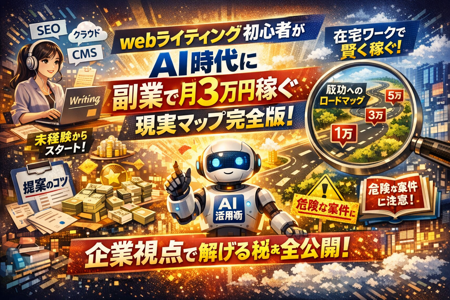 AIツールの導入支援でも、うまく活用して単価を上げた人と、AI丸投げで信用を落とした人がはっきり分かれています。稼げない原因を努力不足や才能のせいにしてほしくないので、発注側と現場で見てきた具体的な道筋を、月3万円を目指す現実的な地図としてまとめました。