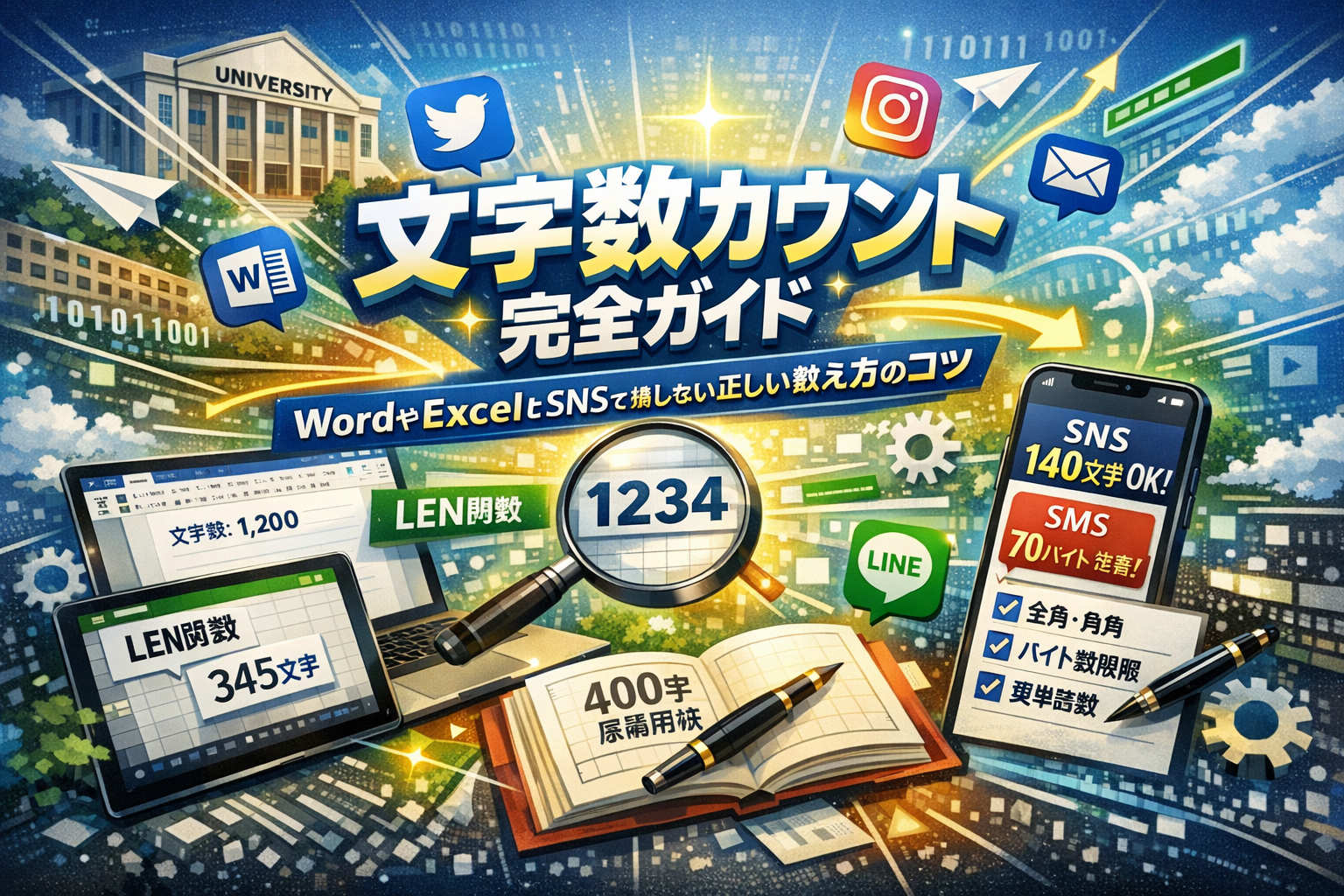 本記事では、無料ツールで今すぐ文字数カウントする方法から、WordやExcel関数での精密な管理、英語の単語数や原稿用紙換算、SNSやメール・SMS、Webフォーム特有のバイト数制限まで、場面ごとに「この値を見れば失敗しない」という実務基準を整理します。さらに、中小企業やチームで起きがちな「文字数ルール不一致」の構造と、社内外で共有できるチェックフローまで解説します。この数分を投資するかどうかで、今後の文字数トラブルに費やす時間がほぼゼロになるかどうかが決まります。