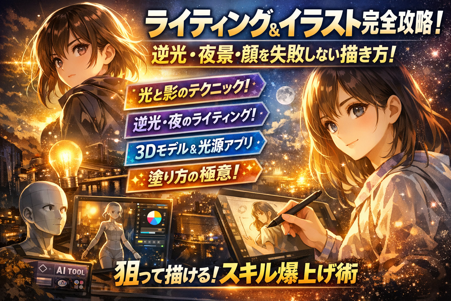 ライティングとイラストの完全攻略!逆光や夜景・顔を失敗しない描き方と楽しい練習法